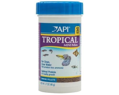 API TROPICAL MINI PELLET FOOD 48GMAPI Tropical Mini Pellet Food is the ideal food for your tropical fish. Studies have shown the Tropical Mini Pellet Food by API contains 30% less ammonia than other foods on the market. It won’t cloud up your water, nor will it provide your fish with excess nutrition – so it means less waste from your fishy friend! API Mini Pellets for Tropical Fish is made with highly palatable ingredients like vanilla, garlic and banana. It’s easy for your fish to eat, and they’ll want to keep eating it!Suitable for species including Angelfish, Tetras and Barbs. This mix of food provides essential amino acids to ensure they are reaching their optimal size. The pellet shaped food locks in the protein so your fish can absorb all of the nutrients they need.Feeding Guide: Feed twice a day, sprinkle a few pellets per each fish. Do not overfeed and remove excess food from the tank.For the best results try API tropical mini pellet food.
