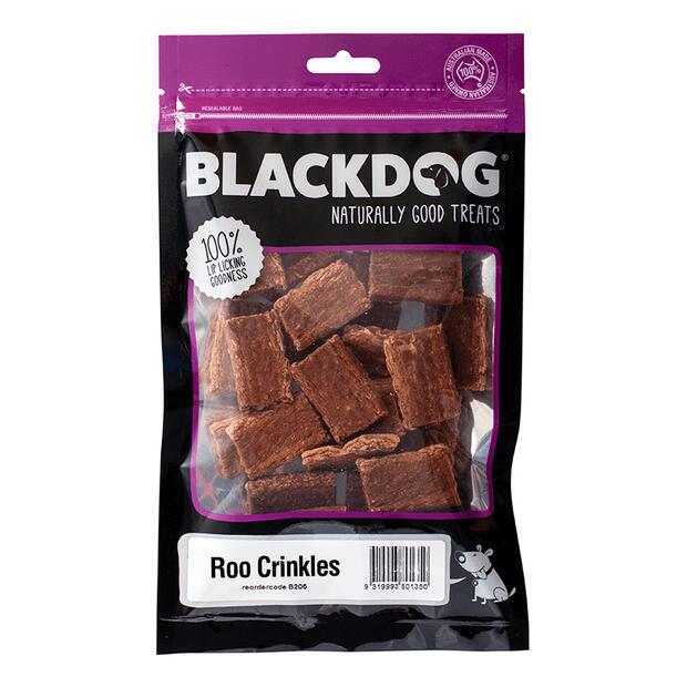 Blackdog Roo Crinkles are made from Australian kangaroo.These kangaroo dog treats offer a lean, high-protein snack, minimally processed for optimal natural goodness your dog will love.