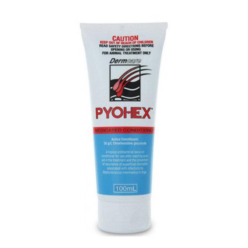 A leave-on medicated, anti-bacterial, coat-conditioning lotion designed to be used in conjunction with Dermcare Pyohex Medicated foam or other appropriate product as recommended by your veterinarian. Product details Aids in the treatment and the prevention of recurrence of superficial dermatitis associated with staphylococcus intermedius infections in dogs use after shampooing with Pyohex Medicated Foam (or other appropriate product) prolongs the effectiveness of medicated shampoos use approximately 1ml for every kilogram weigh of the dog suitable for use on haired and non haired skin do not rinse after application.