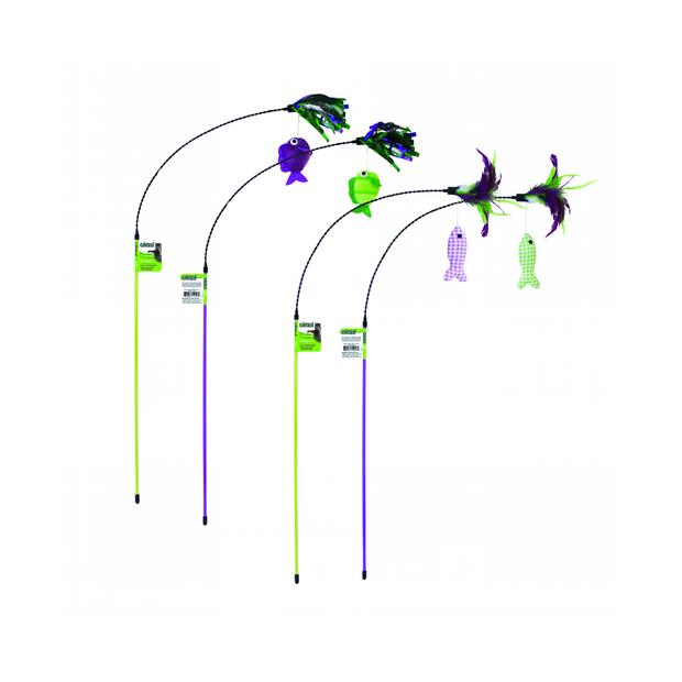 Spark your cat’s natural instincts with the Go Cat Go Teaser Fish. Go Cat Go creates engaging toys that encourage instinct-driven behaviour and interactive fun. This wand toy, with its fish design, feathers, and crinkle sounds, promotes exercise and strengthens your bond through play.