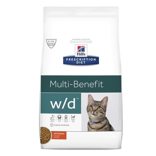 Hills Prescription Diet w/d Multi-Benefit Dry Cat Food has been designed to help maintain your cat’s healthy weight. Overweight pets are at risk for many potential health problems and can even have a reduced lifespan. This is why it’s so important to keep your pets weight at a healthy level. Product details Low fat recipe that has been formulated with an optimal blend of soluble and insoluble fiber to help metabolize fat and maintain lean muscle contains a blend of antioxidants to keep your cat’s immune system in top shape.