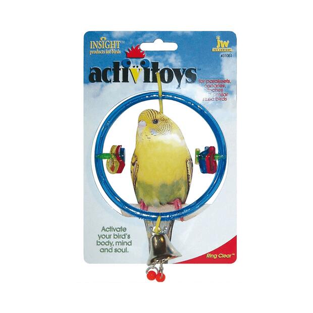 Introducing the JW Insight Activitoys Ring Clear – an innovative toy that cleverly combines entertainment and a comfortable perch for your smaller feathered friends like budgies and cockatiels. This tough, clear plastic ring features enticing charms and a bell, providing both mental stimulation and encouraging essential movement within their cage.
