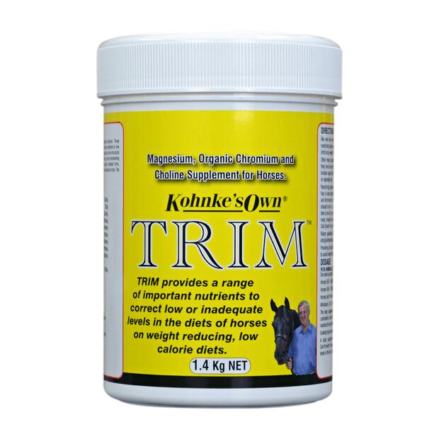 Kohnkes Own Trim, the trusted supplement for horses on weight control regimens, introduces the new pelleted form with a delicious vanilla flavor, designed to complement low-calorie diets and address common issues like cresty neck and abnormal fat deposits.