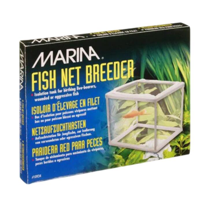 The Marina Fish Net Breeder is an ideal isolation chamber for fish. Its fine mesh allows free water flow and high oxygen levels. It can be used for sick, weak, pregnant, wounded, or aggressive fish