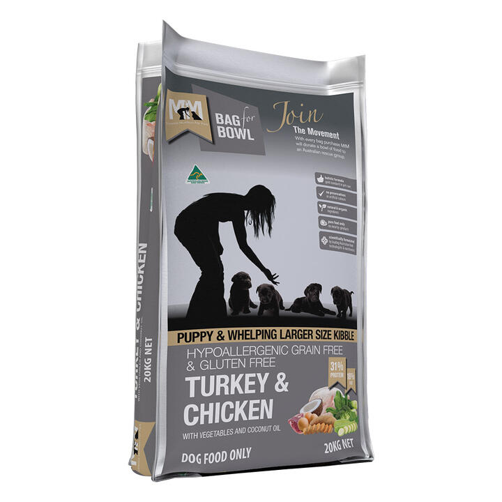 Meals For Mutts (Mfm) Puppy & Whelping Larger Size Kibble Turkey & Chicken With Vegetables And Coconut Oil Dry Dog Food 20 Kg