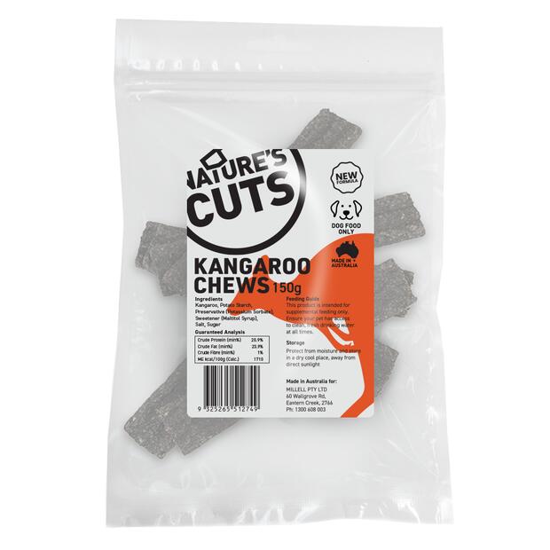 Treat your canine friends to the all-natural goodness of Natures Cuts Kangaroo Chews. Perfect for rewarding and training, these 100% Australian-made chews are both delicious and nutritious, crafted from Australian kangaroo, without any nasty preservatives, and are ideal for eco-conscious consumers.